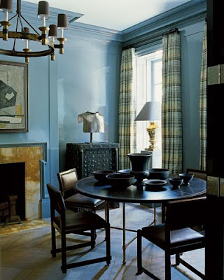 The dining room is directly to your right when you enter the house and even though it photographs more blue, it's actually more grey. Many of the rooms are also painted in custom high gloss paint which I've mentioned before is especially nice in small spaces because it reflects a lot of light.